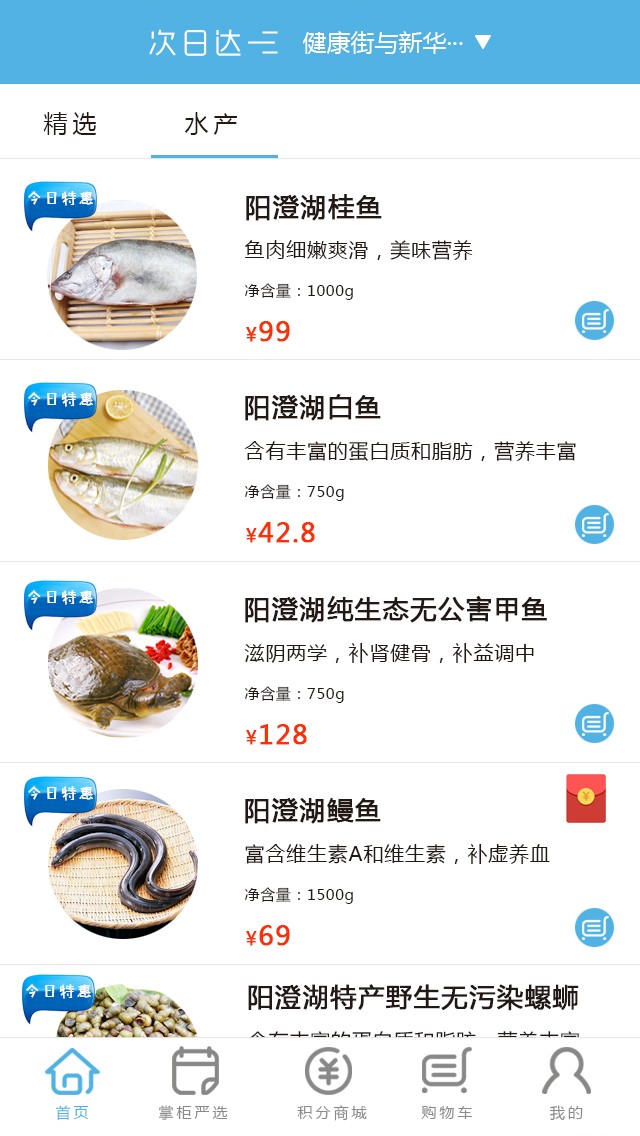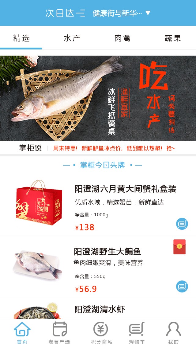 渔鲜宜家主要销售水产品、肉禽类、水果产品;